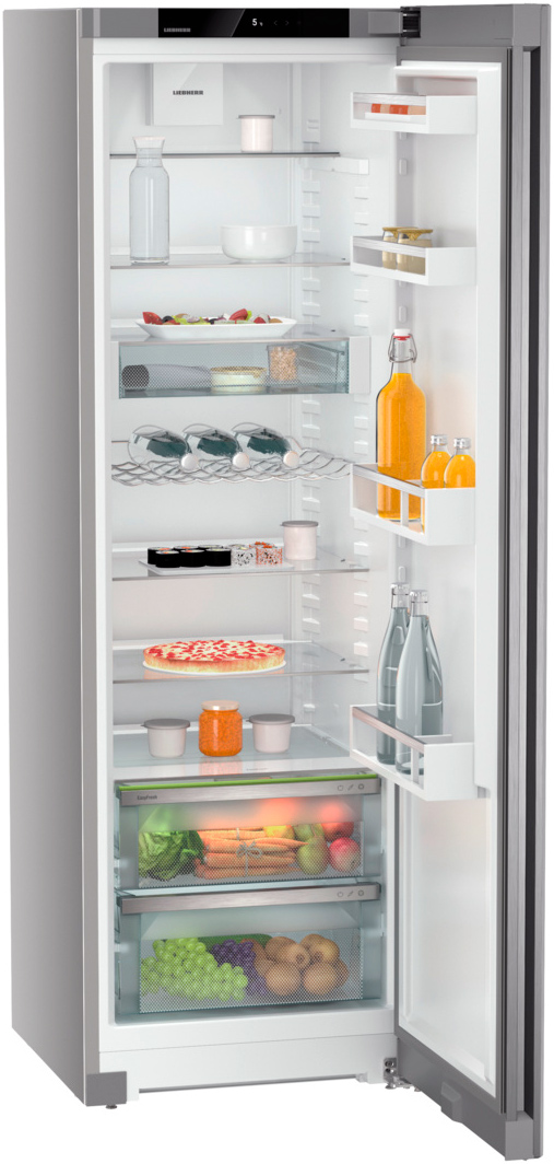 Однокамерный холодильник Liebherr SRsfd 5220 высотой 185,5 см создан для аккуратного и бережного хранения большого количества продуктов. В модели предусмотрено рациональное внутреннее пространство: 7 полок (включая складную двойную), переставляемый контейнер VarioSafe, бутылочница и зона свежести с двумя закрытыми контейнерами с разной влажностью. Продуманная компоновка и возможность установки вплотную к стене помогают гибко вписать прибор в кухню.