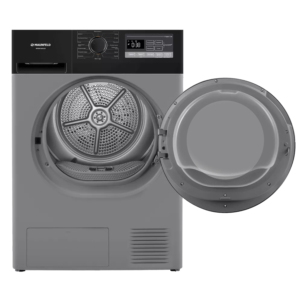 Сушильная машина с тепловым насосом обеспечивает бережную и экономичную сушку до 8 кг белья. Среди функций — датчик влажности, «Антисмятие», отложенный старт и подсветка барабана.