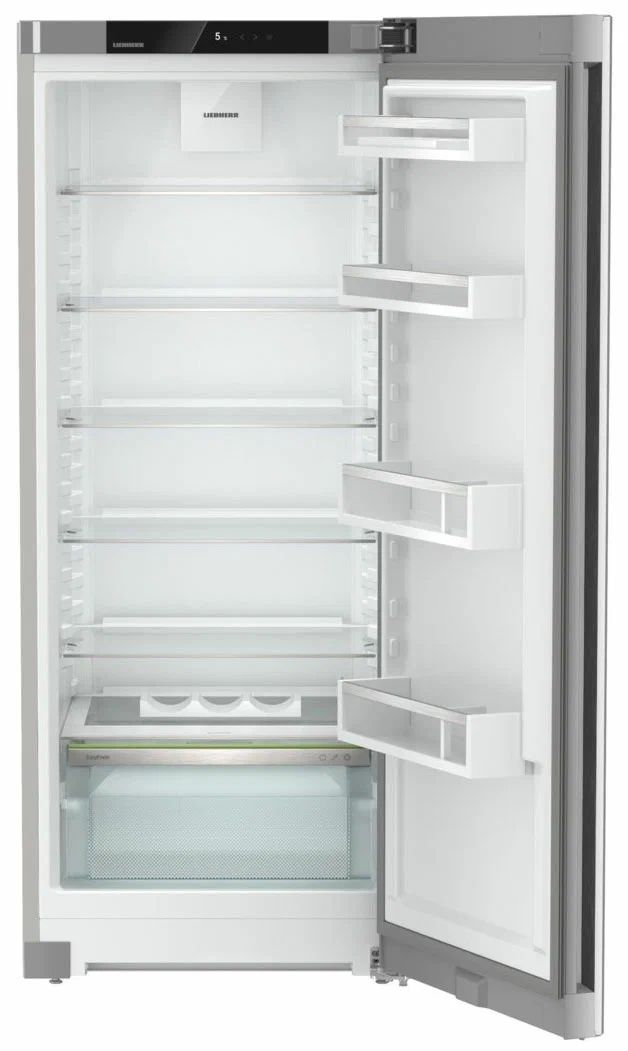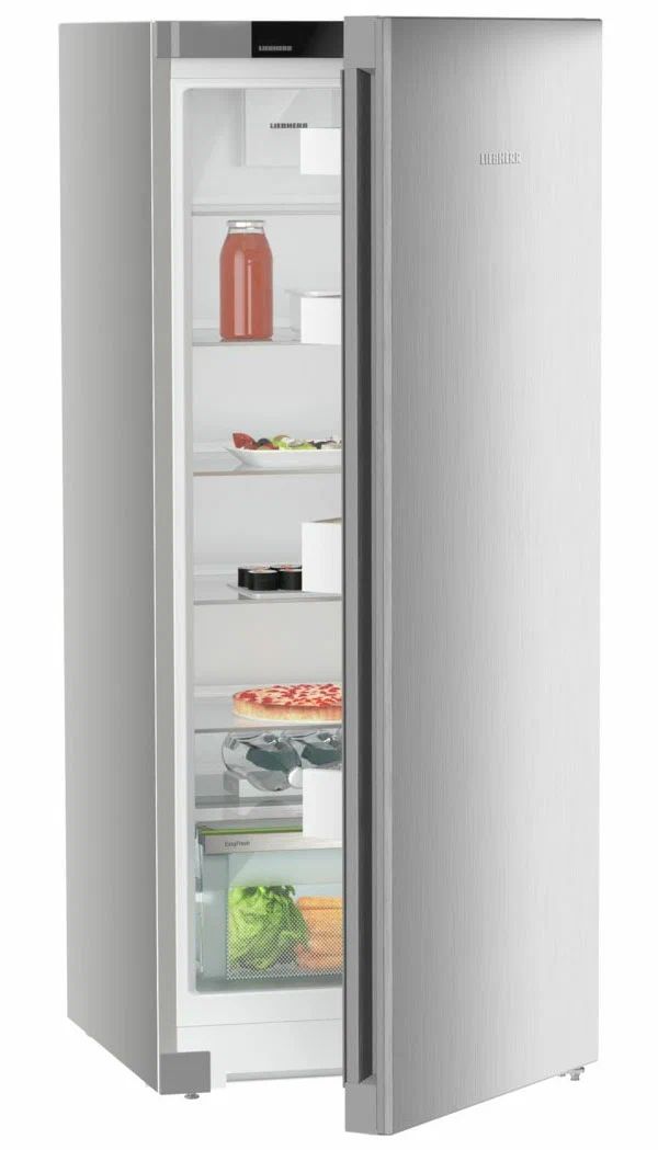 Однокамерный холодильник Liebherr Rsfd 4600-22 001 ориентирован на тех, кто ценит аккуратный минимализм и удобство повседневного хранения. Поверхность SteelFinish поддерживает строгий, «холодный» стиль кухни и легко очищается, а лаконичная утопленная ручка визуально «облегчает» фасад и делает открывание комфортным. Концепция InteriorFit помогает аккуратно встроить прибор в нишу глубиной 60 см — выступает только дверь.