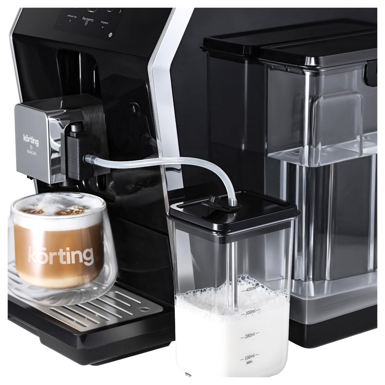 Отдельностоящая кофемашина Korting KACM 2004 Adagio — это уникальное сочетание стиля, функциональности и качества. Корпус выполнен из нержавеющей стали, что обеспечивает долговечность и надежность использования. Черный цвет придает устройству современный и стильный вид. Сенсорный дисплей обеспечивает удобное и интуитивно понятное управление.