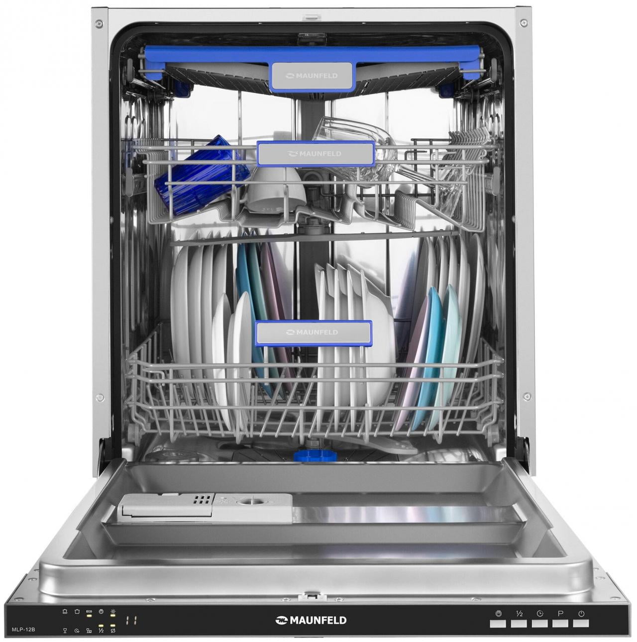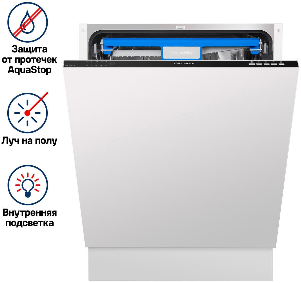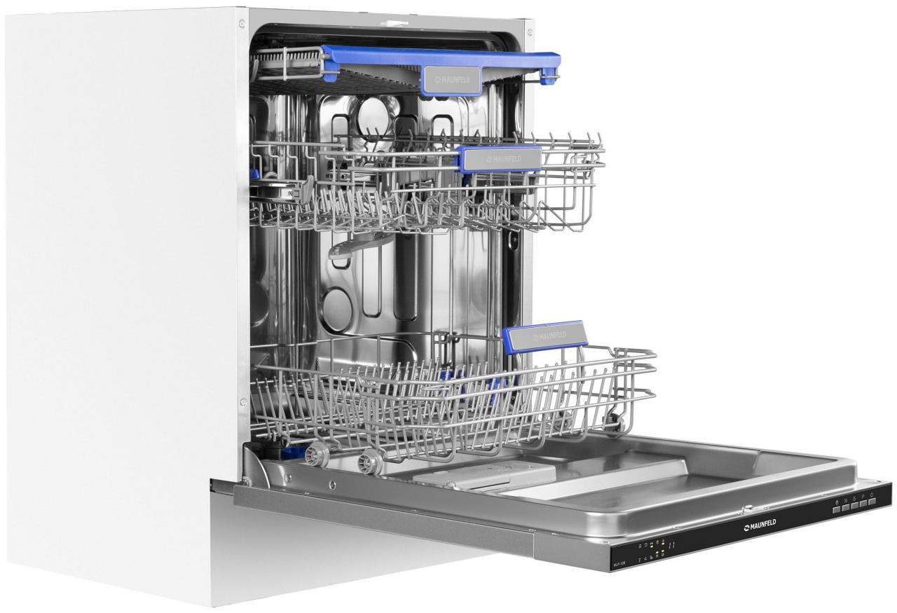 Особенности конструкции - внутренняя поверхность из нержавеющей стали, дисплей, использование средств 3 в 1, подсветка камеры, регулируемая по высоте корзина для посуды, таймер отсрочки