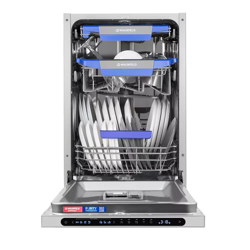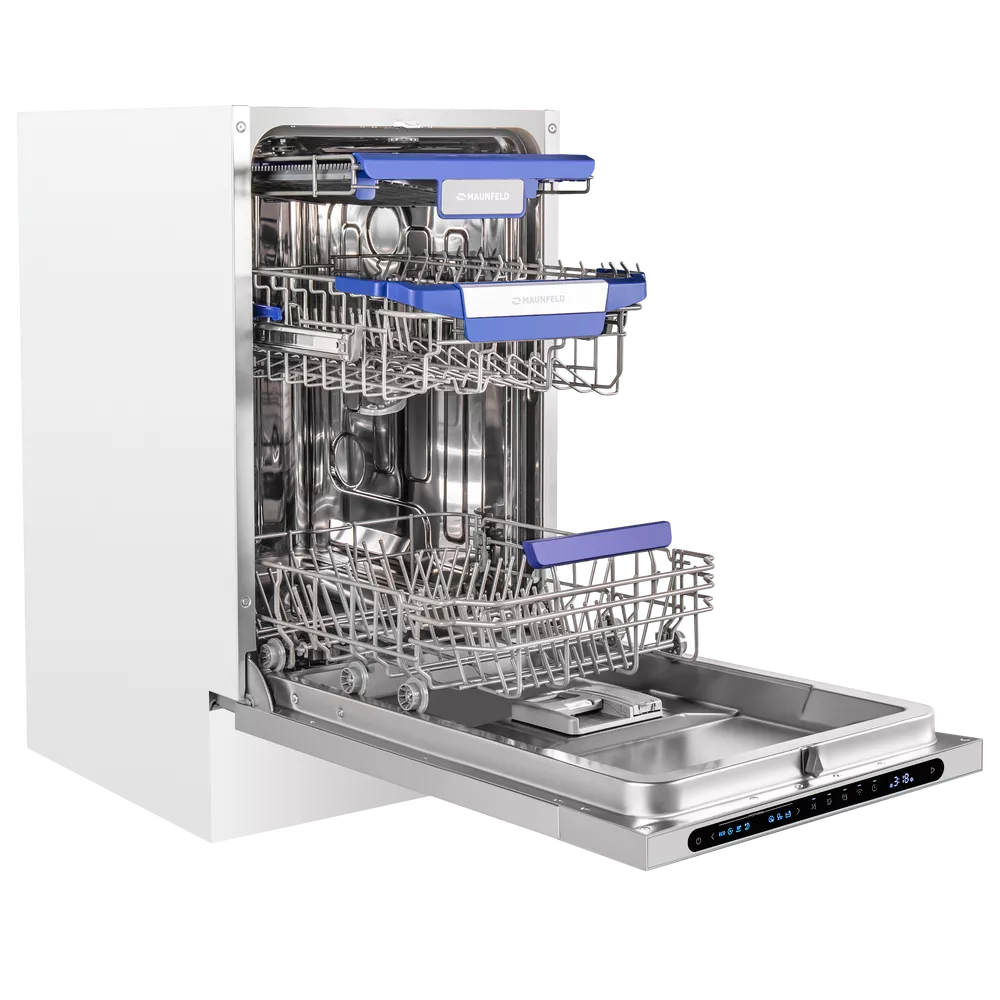 Посудомоечная машина MAUNFELD MLP45331T Light Beam Wi-Fi — удачное решение для кухни, где важно сохранить пространство: узкий формат с ширина 45 см позволяет встроить технику даже в компактный гарнитур без компромиссов по возможностям. При этом модель остаётся по-семейному практичной: вмещает до 10 комплектов посуды — удобно как для ежедневного цикла, так и после приёма гостей.