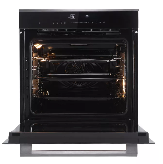 Тройное остекление дверцы удерживает тепло внутри, экономя энергию и делая внешнюю поверхность безопасной для прикосновения. Доводчик дверцы обеспечивает плавное и тихое закрывание. Система