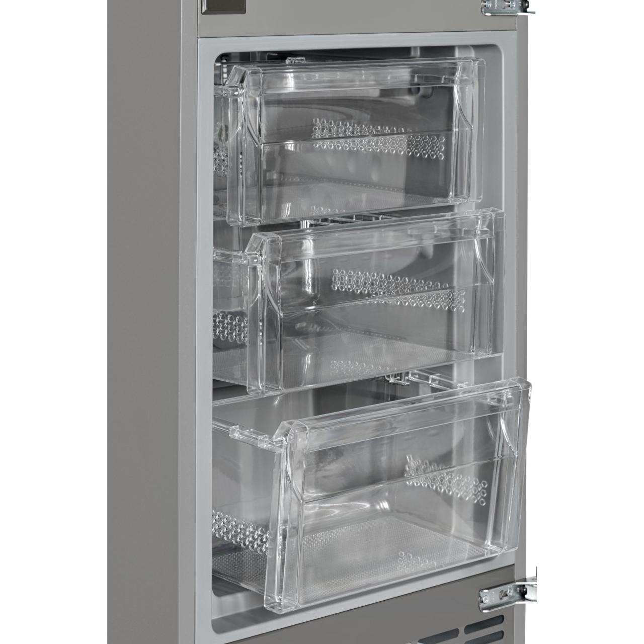 Встраиваемый холодильник HIBERG i-RFCB-400F NF с инверторным компрессором, автоматической системой охлаждения Total No Frost и электронным управлением — идеальный выбор для встраивания в кухонный гарнитур и создания комфортного пространства на кухне. Двери холодильника можно повесить на правую или левую сторону. Это позволяет открывать их в удобном направлении и устанавливать технику в любом месте. Корпус, как и внутренняя часть модели стильного серого цвета.