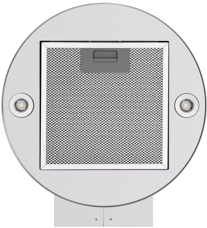 Корпус цилиндрической формы, выполненный из нержавеющей стали с термостойким покрытием, устанавливается на стену над поверхностью плиты. Алюминиевый многослойный жироулавливающий фильтр находится в нижнем торце вытяжки.